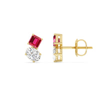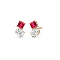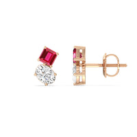 Dress up a simple outfit for a night out or for a semi-formal affair through these two-stone studs. These beauties come with a pair of diamonds on each earring - a Created Ruby square emerald and an oval diamond mounted separately on individual prong baskets but sitting right beside each other. Their subtle edginess and stunning sparkle make them the perfect accessory to glam up any look.