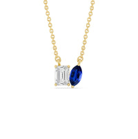 Adding this to any ensemble makes a subtle yet tasteful difference to your looks. This two-stone pendant features an emerald-cut diamond and Created Sapphire marquise , on separate pronged bezels, sitting side by side to provide an eye-catching shine. Its edgy yet discreet design will complement everything, from casual jeans-and-a-tee to your elegant LBD.
