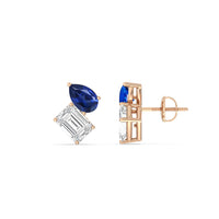 An excellent pair for everyday or special occasion wear, these earrings provide the perfect amount of sparkle to match your modern style. The stud earrings feature a Created Sapphire pear and an emerald-cut diamond sitting side by side on pronged baskets. Expect these studs with screw-back closure to infuse a hint of geometric glamour into any ensemble.