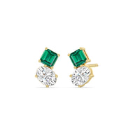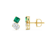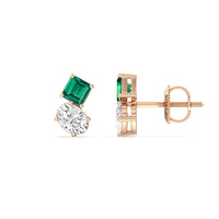 Dress up a simple outfit for a night out or for a semi-formal affair through these two-stone studs. These beauties come with a pair of diamonds on each earring - a Created Emerald square emerald and an oval diamond mounted separately on individual prong baskets but sitting right beside each other. Their subtle edginess and stunning sparkle make them the perfect accessory to glam up any look.