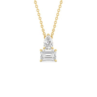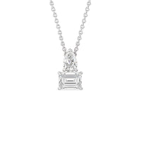 Round out your effortlessly stylish look with a necklace bearing this two-stone diamond pendant. This fine piece features a pear-shaped and emerald-cut diamond linked together in a simple yet chic manner. The pared-back and fuss-free attractiveness of this pendant makes it a versatile accessory - one that you can easily wear and pair with anything.