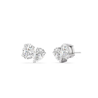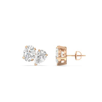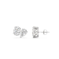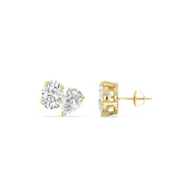 Truly brilliant, these two-stone stud earrings can enhance your style in an instant. They're a good alternative to basic solitaire studs, perfect for when you want to add a bit more glitter and glamour to your looks while still keeping an understated look. The earrings feature an oval and pear-shaped diamond mounted on an angle, side-by-side, for an edgier style.