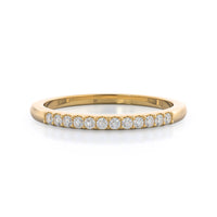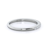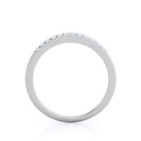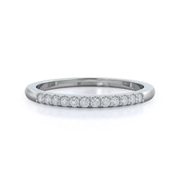 Each accent diamond on this pave wedding band aligns perfectly with its partner on your matching engagement ring. The effect is a stunning road of diamond duos that cover your finger in a seamless ribbon of sparkle.