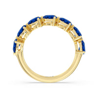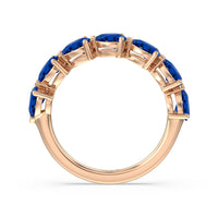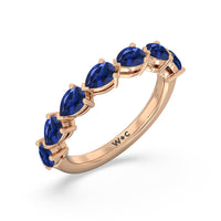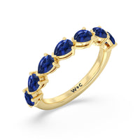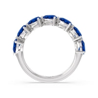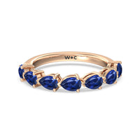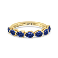 A subtle shift in perspective and you'll instantly see how this modernized classic can effortlessly wow the one you love. This anniversary band features a polished shank, half of which is traced with pear-cut created sapphire in an unconventional east-west setting. The horizontal setting of the stones gives a fresh, unexpected, and dramatic twist to the classic look of a traditional half-eternity ring.