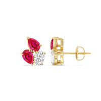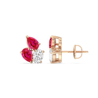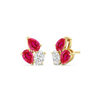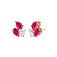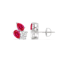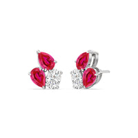 You won't regret treating yourself to this fuss-free wardrobe staple. These diamond and created ruby cluster earrings will easily fit in with many different looks. Each earring features three stones set close to each other: two of which are pear-shaped and set in opposite directions, and one oval-shaped secured by four prongs.