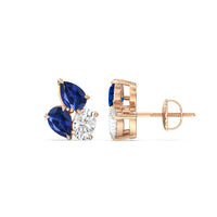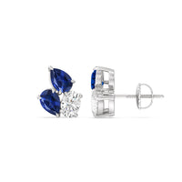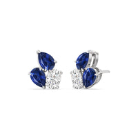 You won't regret treating yourself to this fuss-free wardrobe staple. These diamond and created sapphire cluster earrings will easily fit in with many different looks. Each earring features three stones set close to each other: two of which are pear-shaped and set in opposite directions, and one oval-shaped secured by four prongs.