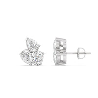 You won't regret treating yourself to this fuss-free wardrobe staple. These diamond cluster earrings will easily fit in with many different looks. Each earring features three diamonds set close to each other: two of which are pear-shaped and set in opposite directions, and one oval-shaped secured by four prongs.