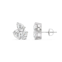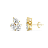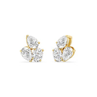 You won't regret treating yourself to this fuss-free wardrobe staple. These diamond cluster earrings will easily fit in with many different looks. Each earring features three diamonds set close to each other: two of which are pear-shaped and set in opposite directions, and one oval-shaped secured by four prongs.