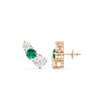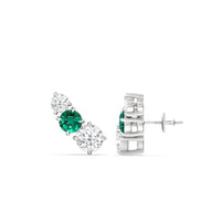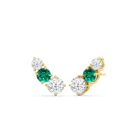 These three-stone ear climbers are versatile and extremely easy to wear. Each earring features a trio of round diamonds and created emerald in graduating sizes, set in a semi-straight line. You only need this pair to get that fashion-forward multiple-piercing look without having to actually get extra holes.