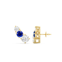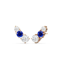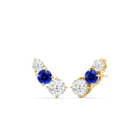 These three-stone ear climbers are versatile and extremely easy to wear. Each earring features a trio of round diamonds and created sapphire in graduating sizes, set in a semi-straight line. You only need this pair to get that fashion-forward multiple-piercing look without having to actually get extra holes.
