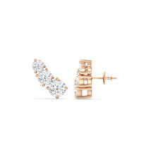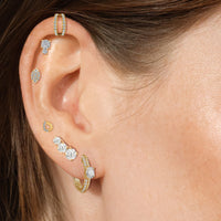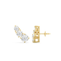 These three-stone ear climbers are versatile and extremely easy to wear. Each earring features a trio of round diamonds in graduating sizes, set in a semi-straight line. You only need this pair to get that fashion-forward multiple-piercing look without having to actually get extra holes.