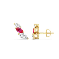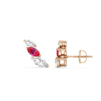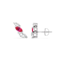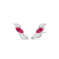 Inspired by a vine, this pair of glittering ear climbers features a trio of marquise diamonds and created ruby that look like sparkling leaves. These foliage-style ear crawlers exude romantic elegance with their dainty curves and understated sparkle.