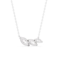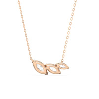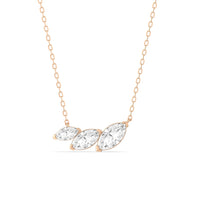 Easy elegance is the name of this necklace's game. It features a trio of marquise diamonds in graduating sizes, each laid out in a slightly tilted east-west setting. With an air of nonchalant charm, this necklace will easily be your new go-to diamond accessory.