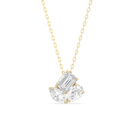 Get ready to turn heads with this absolute stunner. This necklace features a trio of diamonds: a 1.0 ct emerald-cut diamond, a 0.50 ct marquise diamond, and a 0.625 ct pear diamond, all positioned in a slanted style for that edgy yet elegant look. With this in your collection, you can flawlessly pull together any look.