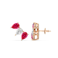 For days that call for extra style and sparkle, opt for these dazzling ear crawlers. These earrings feature a trio of pear diamond and created ruby set on a curved layout that follows the ear's natural curve. Designed with comfortable confidence in mind, these climber earrings can give you that edgy look effortlessly.