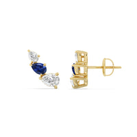 These sparkling ear climbers are ready to simultaneously bring brilliance and personality to your looks. These trendy earrings feature a trio of pear diamonds and created sapphire in tapering sizes, set in a curved line to follow the curve of the ear. With these on, you can effortlessly pull off a stacked-earring look without the need for multiple piercings.