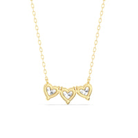 A hopeless romantic's choice. This diamond necklace displays a lovely sparkle with its trio of heart-shaped diamonds, totaling 1.50 carats. Claw prongs hold each diamond in place.