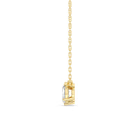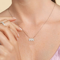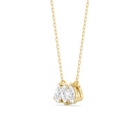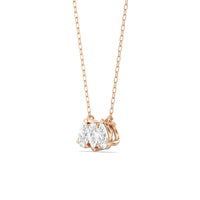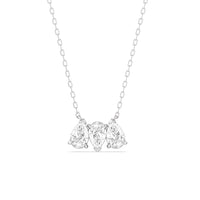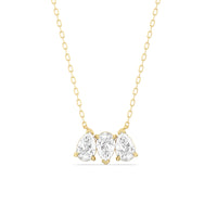 With a combination of trendy and timeless elegance, this diamond necklace is sure to impress. It features three pear-cut diamonds, each weighing 0.5 carats. The diamonds form a short row and are set in an alternating north-south orientation.