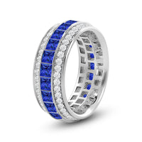 For a loved one who's anything but ordinary. Here is a stunning eternity band that makes an unexpected style statement. The shank is covered with three rows of diamonds, two of which feature round diamonds. Sandwiched in the middle is a circle of channel-set Created Sapphire princess-cut. This band would, undeniably, make a precious promise ring or anniversary ring.