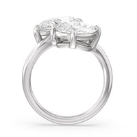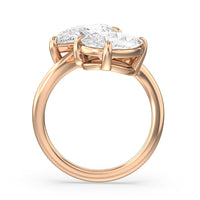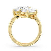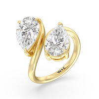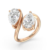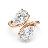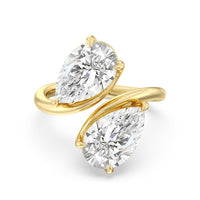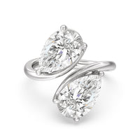 Pick this ring if you're searching for a modern minimalist engagement ring that tells a story and tells it in a simply romantic way. This “toi et moi” or you-and-me ring perfectly depicts the meeting of two souls. It features a slim yet curvy bypass shank, with each end topped with a pear-cut diamond on a three-prong basket setting.