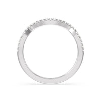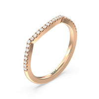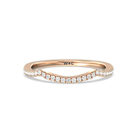 This curved diamond set wedding band is perfectly contoured to complement our twist hidden accent engagement ring for a simple and sophisticated look.