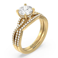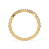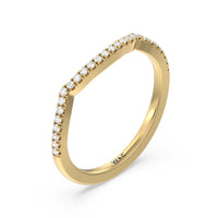 This curved diamond set wedding band is perfectly contoured to complement our twist hidden accent engagement ring for a simple and sophisticated look.