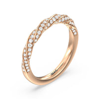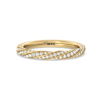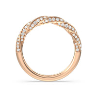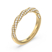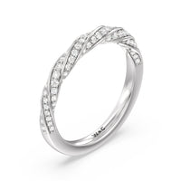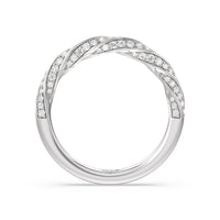 Shimmering pave diamonds cascade down this band to create a timeless beauty that will never go out of style. Designed to be paired with our twisted rope hidden halo solitaire engagement ring for a simple and sophisticated look.