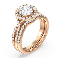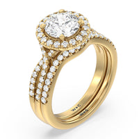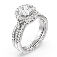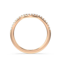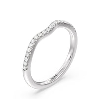 This curved diamond set wedding band is perfectly contoured to complement our twisted shank halo engagement ring for a simple and sophisticated look.