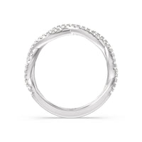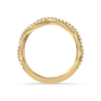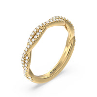 Shimmering pave diamonds cascade down this band to create a timeless beauty that will never go out of style. Designed to be paired with our twisted shank hidden halo solitaire engagement ring for a simple and sophisticated look.