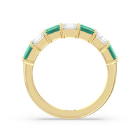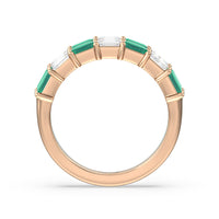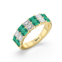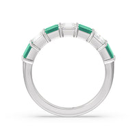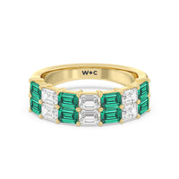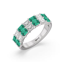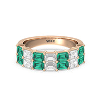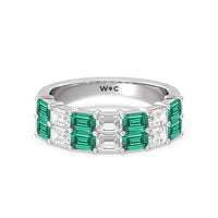 Two Row Created Emerald and Emerald Shape Diamond East-West Anniversary Ring