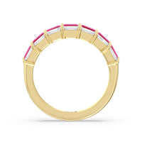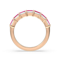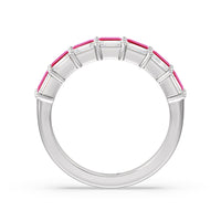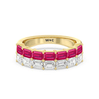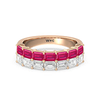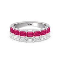 Two Row Linear Created Ruby Emerald Diamond East-West Anniversary Ring
