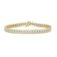 Adding this heirloom-worthy piece to your jewelry box is something you will never regret. This shimmering tennis bracelet features two continuous rows of diamonds ready to instantly elevate any outfit. Its subtle elegance suits casual and formal attires alike. Wear this on its own or layer it with a watch or your other favorite bracelets.