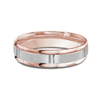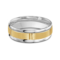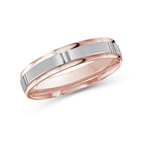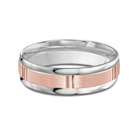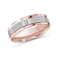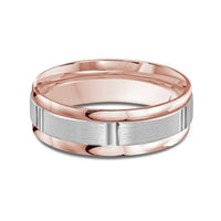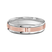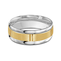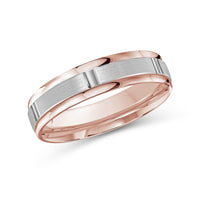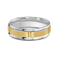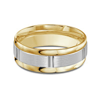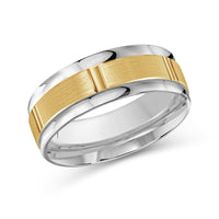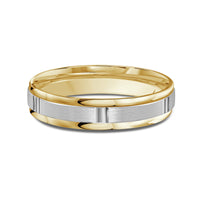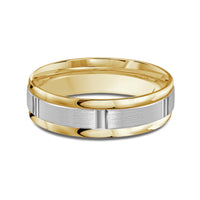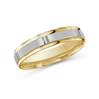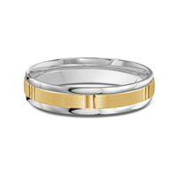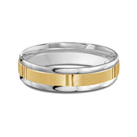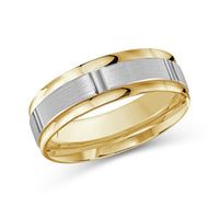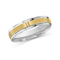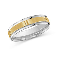 The perfect representation of your eternal bond. This two-toned men's band combines two different shades of gold. A horizontal channel is set over the comfort fit band, and together they form one continuous circle, like you and your significant other unified in love.