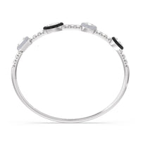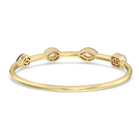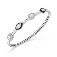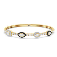 Your new go-to wrist accessory. This versatile bracelet features pave-set diamonds tracing half of its circumference. Four diamonds, an emerald-cut, marquise, oval, and pear diamond, adorn the bangle's radiant half-circle. Each of the four diamonds is set on a bezel with a vivid ceramic coating.