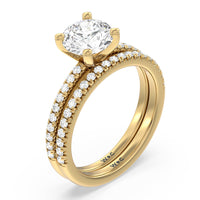 Shimmering pave diamonds cascade down this band to create a timeless beauty that will never go out of style. Designed to be paired with our vela medi french set diamond engagement ring for a simple and sophisticated look.