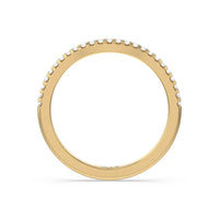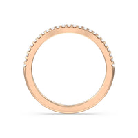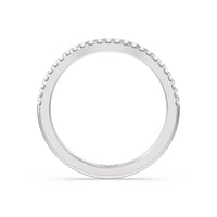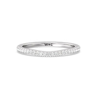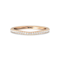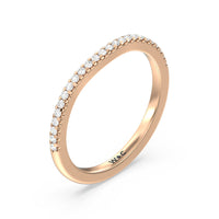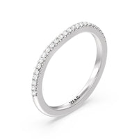 This curved diamond set wedding band is perfectly contoured to complement our vela traditional pave diamond engagement ring for a simple and sophisticated look.
