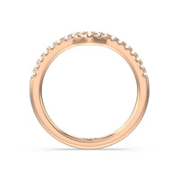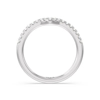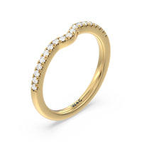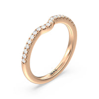 This curved diamond set wedding band is perfectly contoured to complement our something blue veronica spire under halo engagement ring for a simple and sophisticated look.