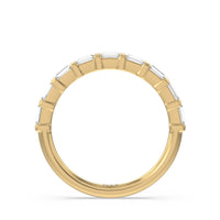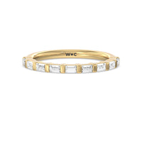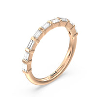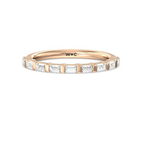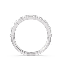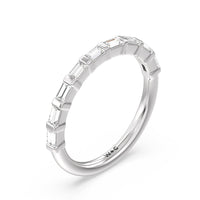 Shimmering pave diamonds cascade down this band to create a timeless beauty that will never go out of style. Designed to be paired with our vintage baguette halo solitaire engagement ring for a simple and sophisticated look.