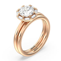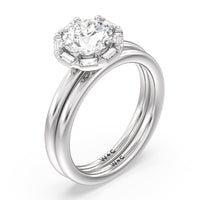 This classic band offers a timeless symbol of love commitment, perfect in its simplicity and is designed to sit perfectly with our vintage baguette halo solitaire engagement ring