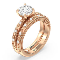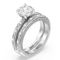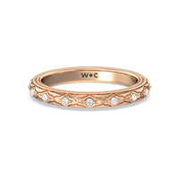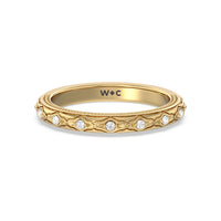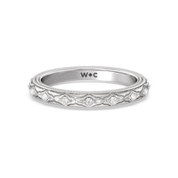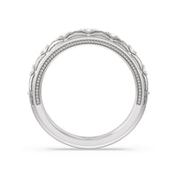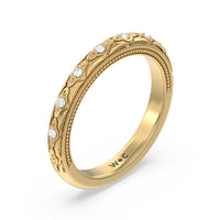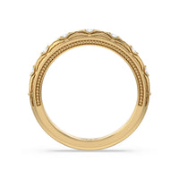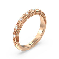 Shimmering pave diamonds cascade down this band to create a timeless beauty that will never go out of style. Designed to be paired with our vintage blossom engagement ring for a simple and sophisticated look.