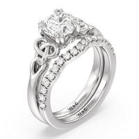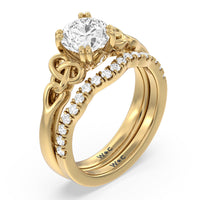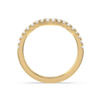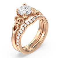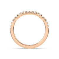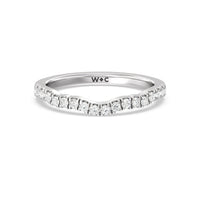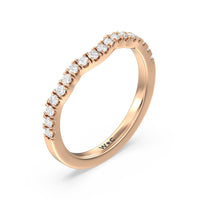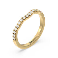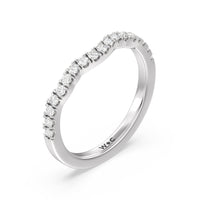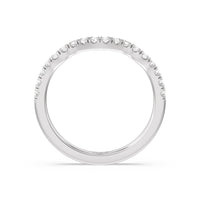 This curved diamond set wedding band is perfectly contoured to complement our vintage celtic knot engagement ring for a simple and sophisticated look.