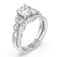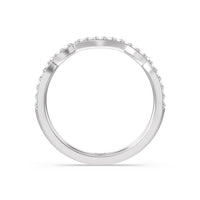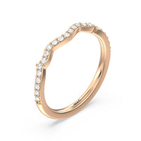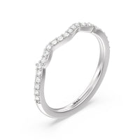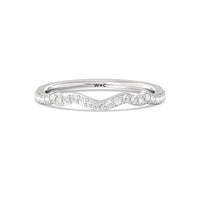 This curved diamond set wedding band is perfectly contoured to complement our vintage filigree leaf diamond engagement ring for a simple and sophisticated look.