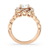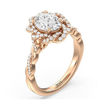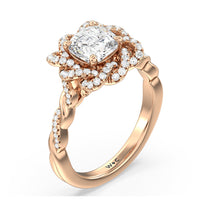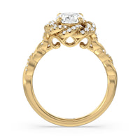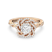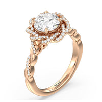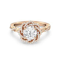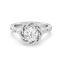 Vintage Floral Twisted Halo Diamond Engagement Ring