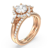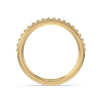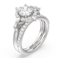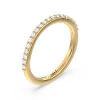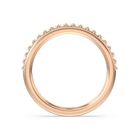 This slightly curved diamond set wedding band is perfectly contoured to complement our vintage glamour grace halo diamond engagement ring for a simple and sophisticated look.