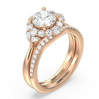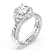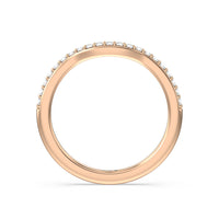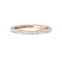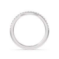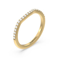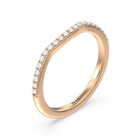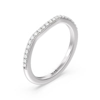 This slightly curved diamond set wedding band is perfectly contoured to complement our vintage glamour halo diamond engagement ring for a simple and sophisticated look.
