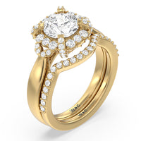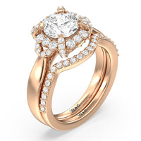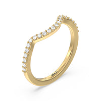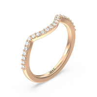 This curved diamond set wedding band is perfectly contoured to complement our vintage glamour leaf diamond engagement ring for a simple and sophisticated look.