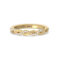 Shimmering pave diamonds cascade down this band to create a timeless beauty that will never go out of style. Designed to be paired with our vintage glamour twisted diamond engagement ring for a simple and sophisticated look.