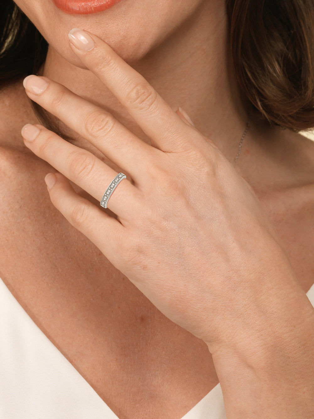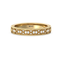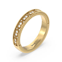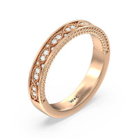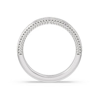 Shimmering pave diamonds cascade down this band to create a timeless beauty that will never go out of style. Designed to be paired with our vintage hidden halo chevron engagement ring for a simple and sophisticated look.