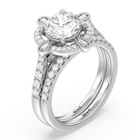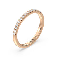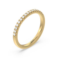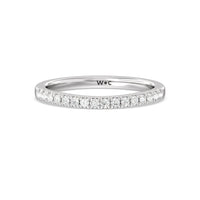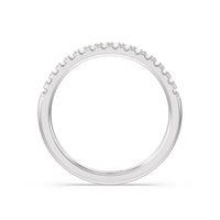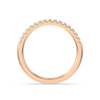 This curved diamond set wedding band is perfectly contoured to complement our bezel set hidden accent diamond engagement ring for a simple and sophisticated look.