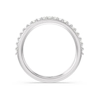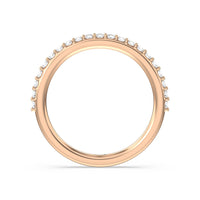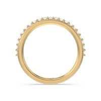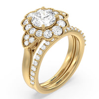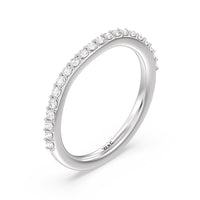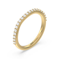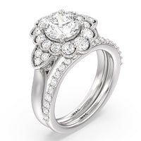 This curved diamond set wedding band is perfectly contoured to complement our vintage spring halo diamond engagement ring for a simple and sophisticated look.